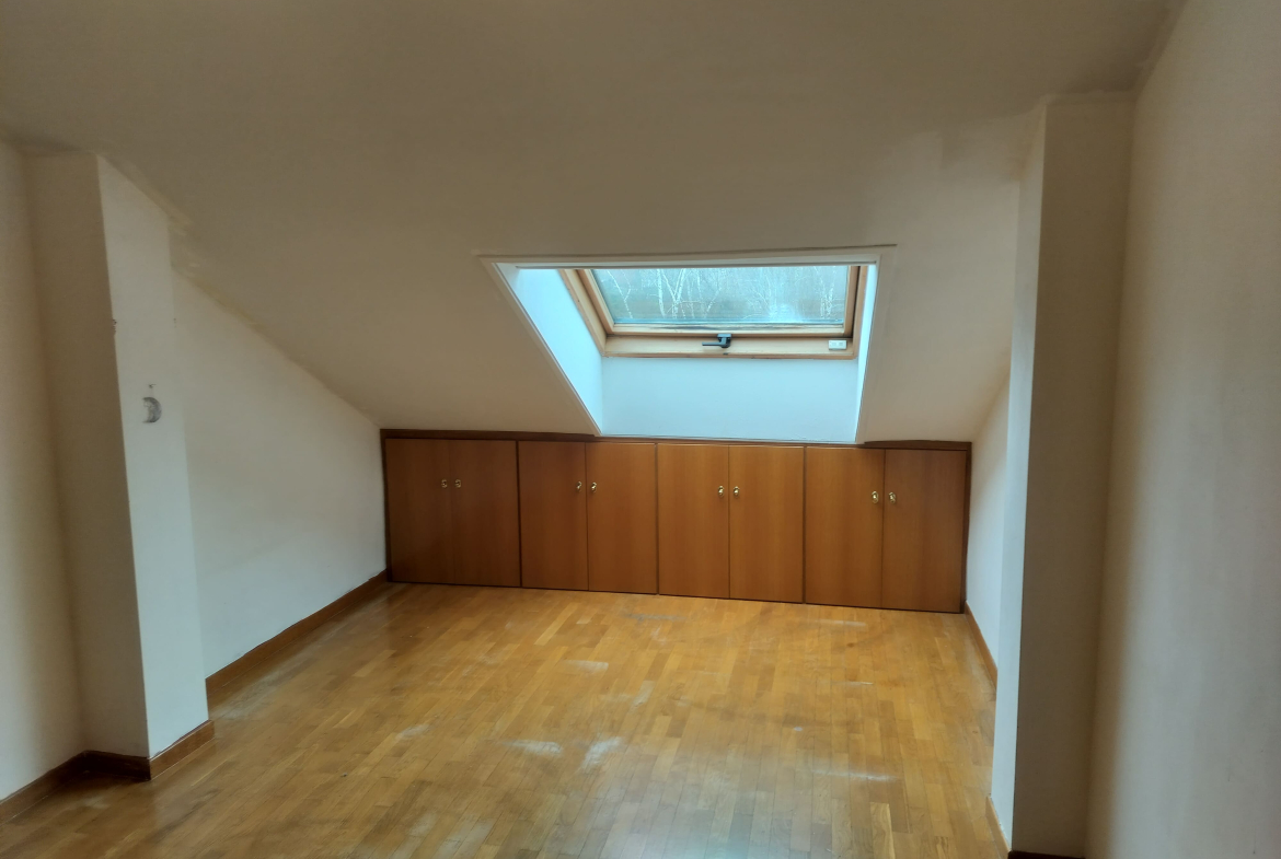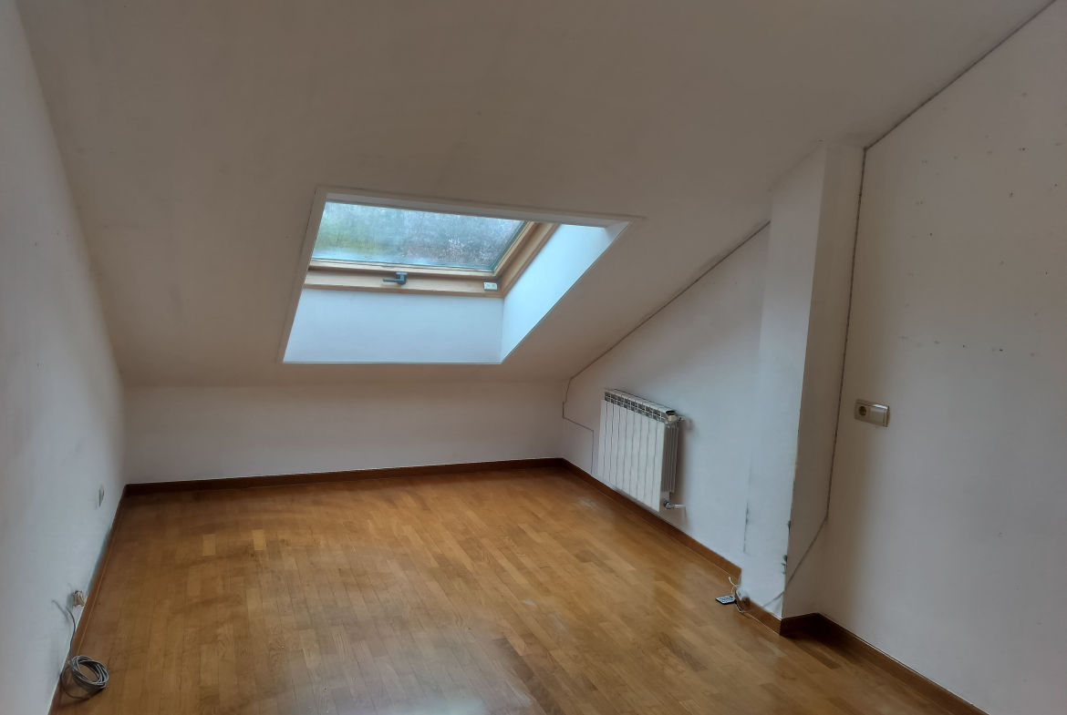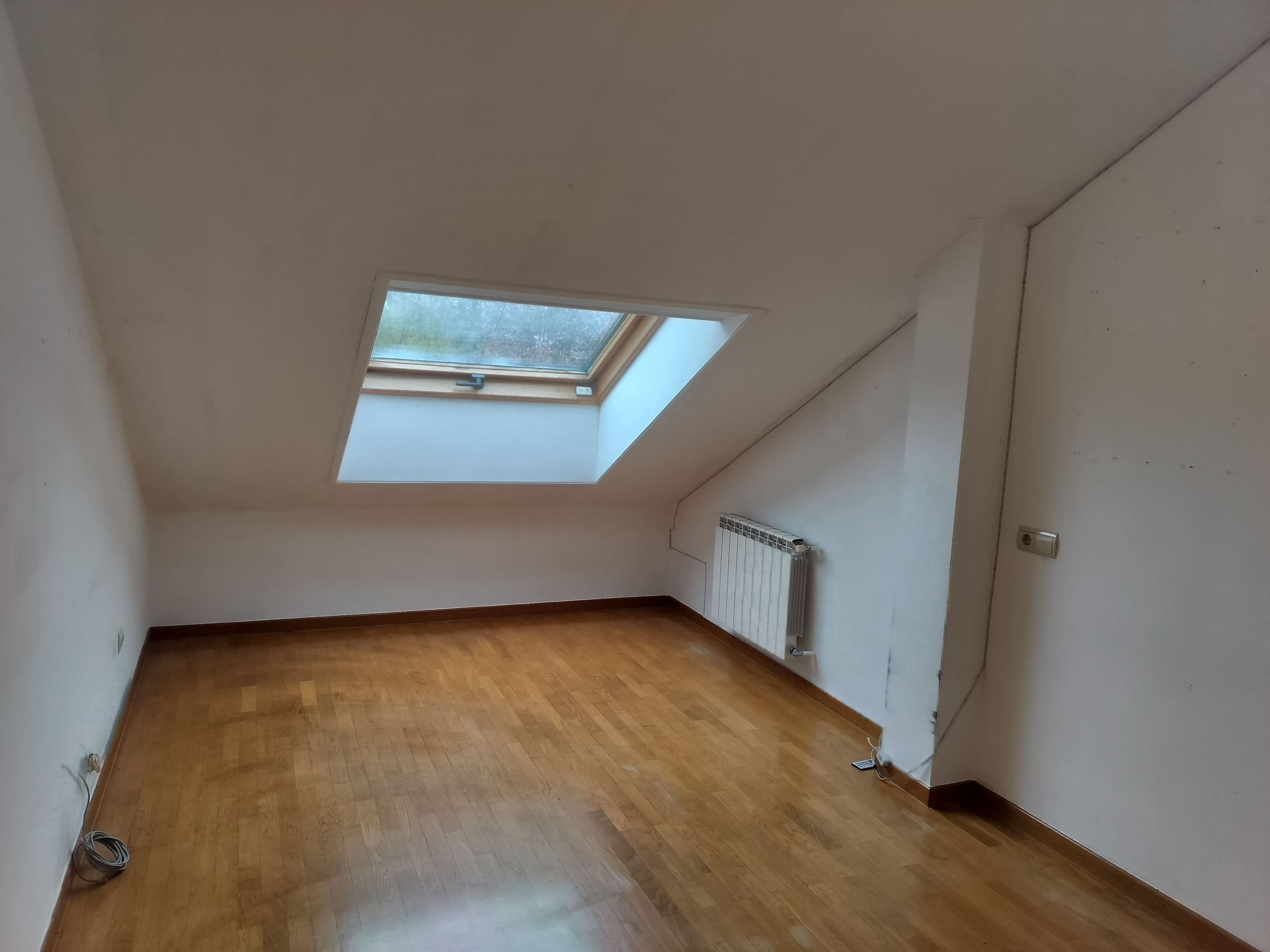 Ventanas de aluminio abatibles y Velux, con persianas eléctricas. Tarima flotante.
