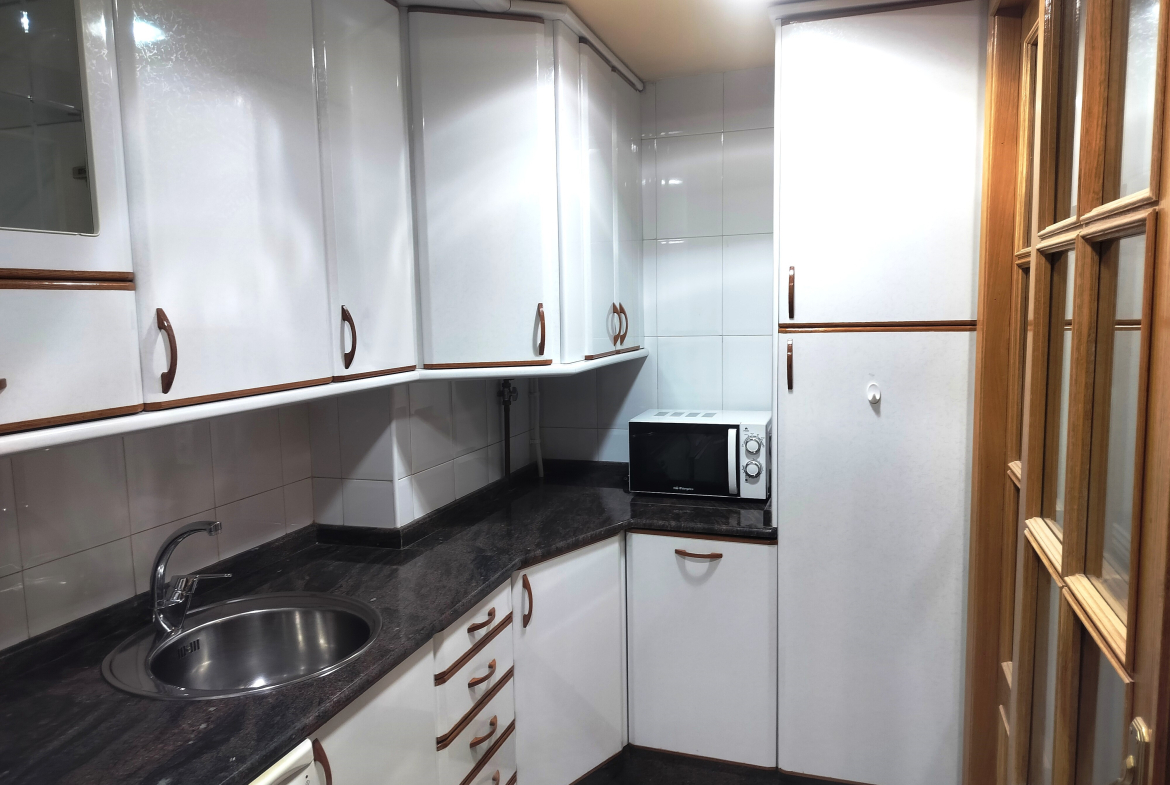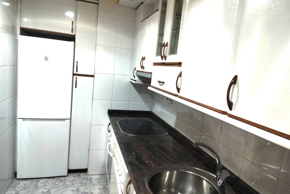 La vivienda dispone de amplio salón con terraza cerrada, cocina cerrada comunicada con el salón por una puerta corredera, 3 dormitorios y 2 cuartos de baño, uno con bañera y otro con plato de ducha. La calefacción y el agua caliente son de gas natural individual.